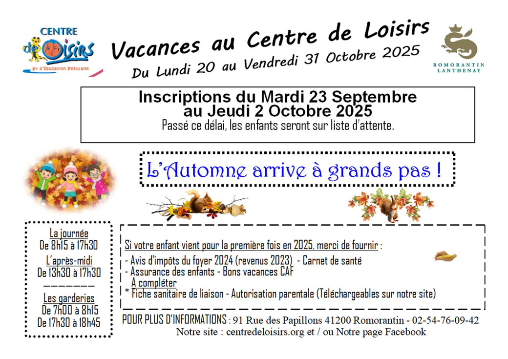 Le centre de loisirs de Romorantin est situé rue des papillons, nous sommes ouvert tous les mercredis en période scolaires et lors de chaque période de vacances (sauf noël).